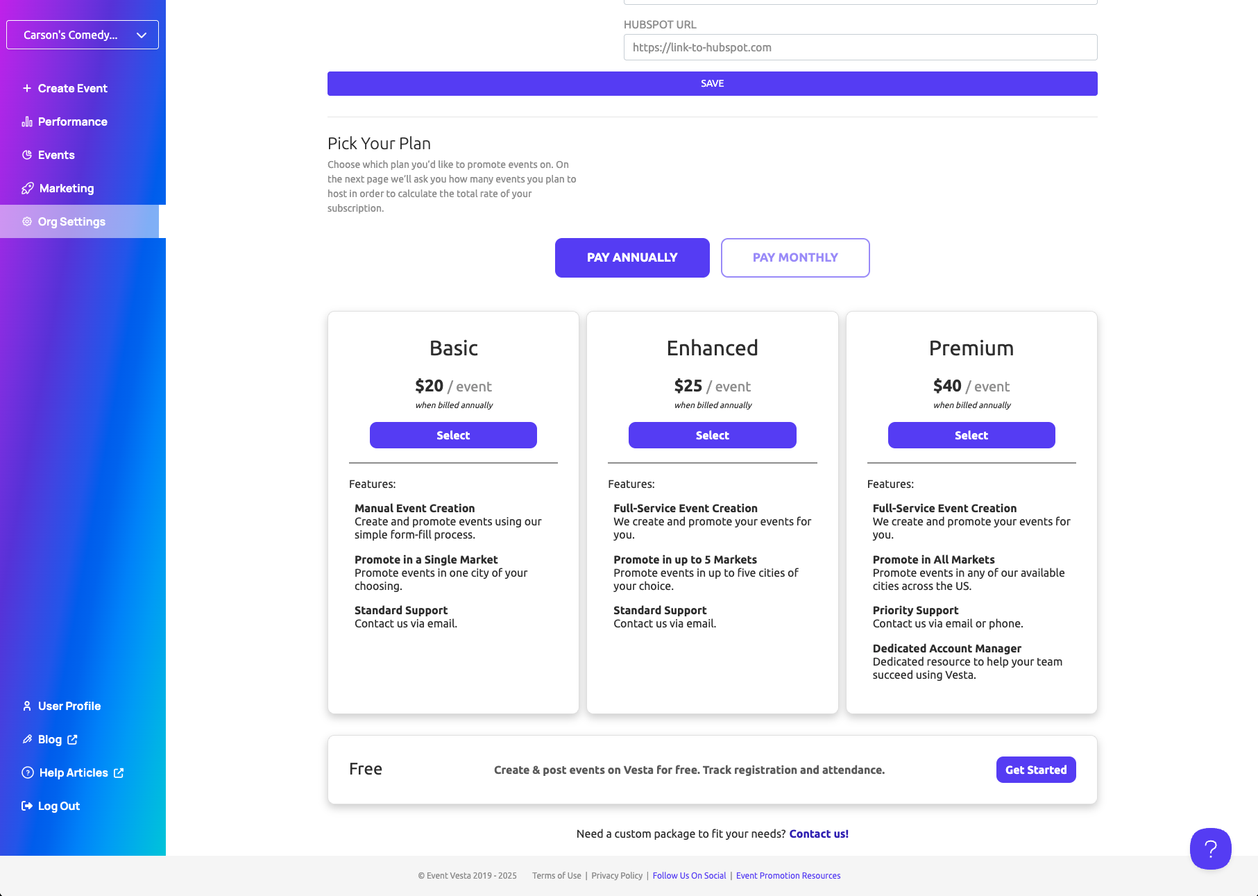 Free accounts in Vesta, also called our "Creator" plan, allow you to post events to eventvesta.com for free.