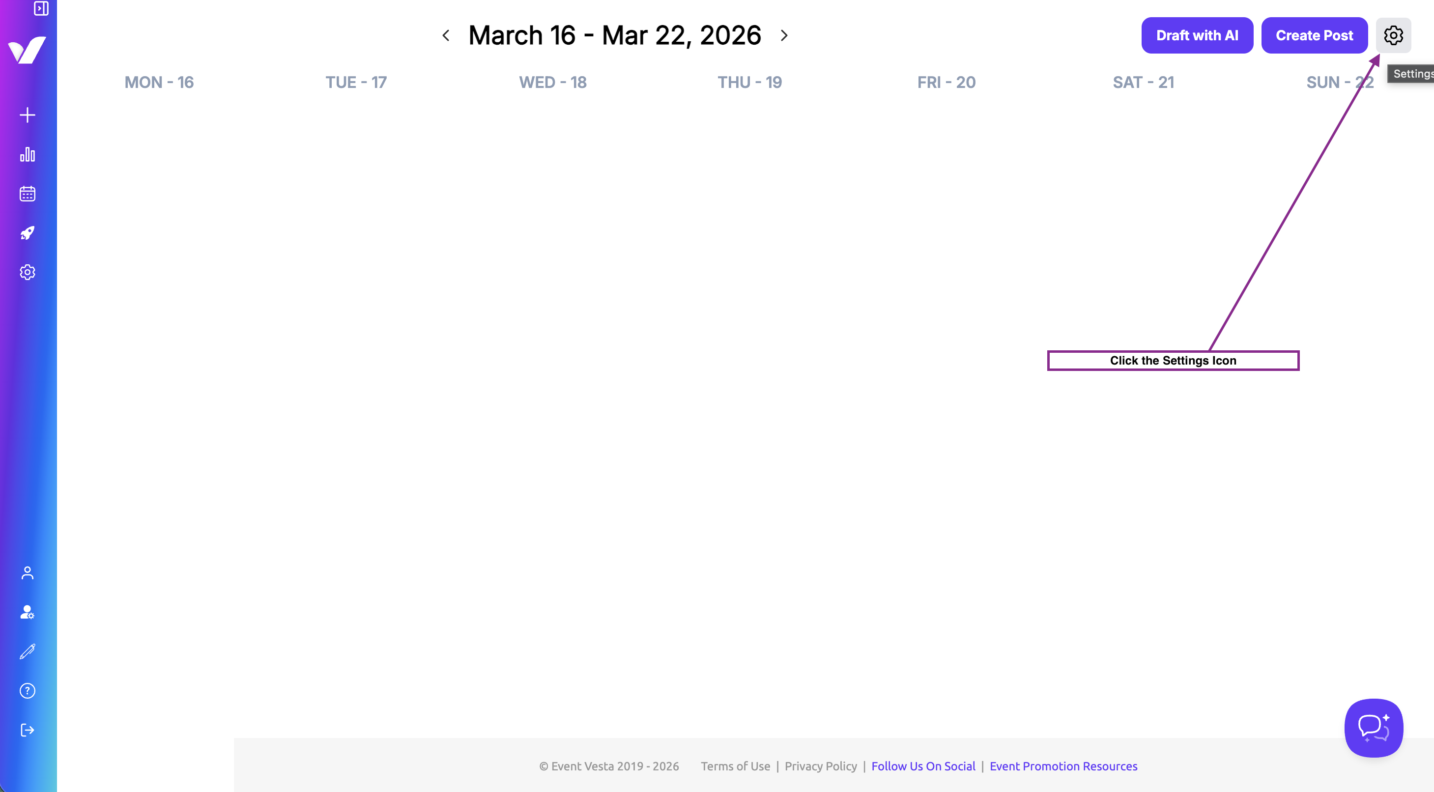 Follow the steps below to connect your social media accounts to Event Vesta and enable social media automation and content creation.